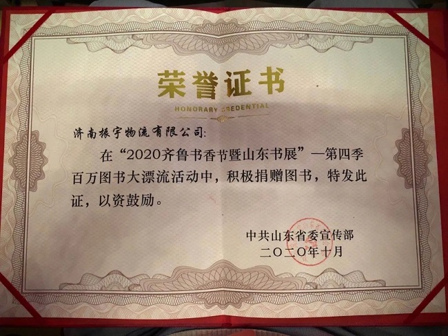 發(fā)布者:振宇物流 發(fā)布時(shí)間:2020-10-26 09:01:48        “百萬(wàn)圖書(shū)大漂流”第四季是由中共山東省委宣傳部主辦、山東廣播電視臺(tái)承辦、濟(jì)南市物流發(fā)展促進(jìn)會(huì)協(xié)辦的公益捐贈(zèng)活動(dòng)。自2017年以來(lái),已成功舉辦三季,建立了二十三所鄉(xiāng)村閱覽室,近萬(wàn)名鄉(xiāng)村孩子,在該活動(dòng)中感受到閱讀的力量。2020年,百萬(wàn)圖書(shū)大漂流第四季再度起航!讓更多的鄉(xiāng)村孩子開(kāi)闊視野,為他們帶去快樂(lè)和希望。