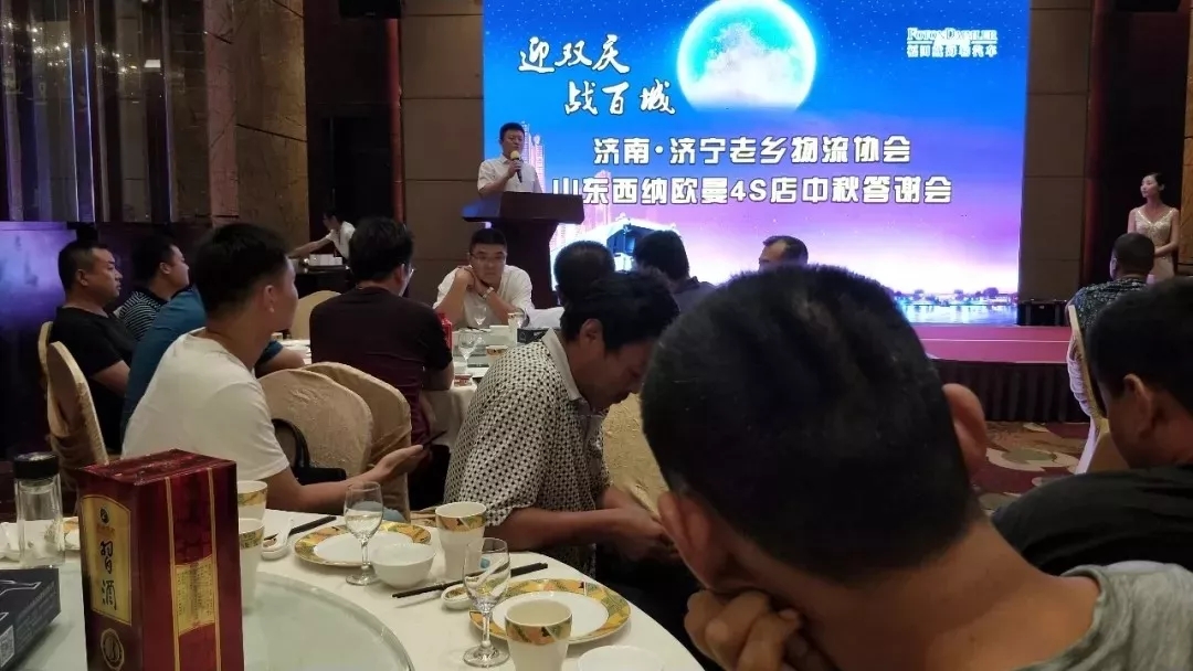 濟(jì)南濟(jì)寧老鄉(xiāng)物流協(xié)會會長、濟(jì)南振宇物流總經(jīng)理張憲振先生,應(yīng)邀出席山東西納歐曼4s店中秋答謝會并致詞!