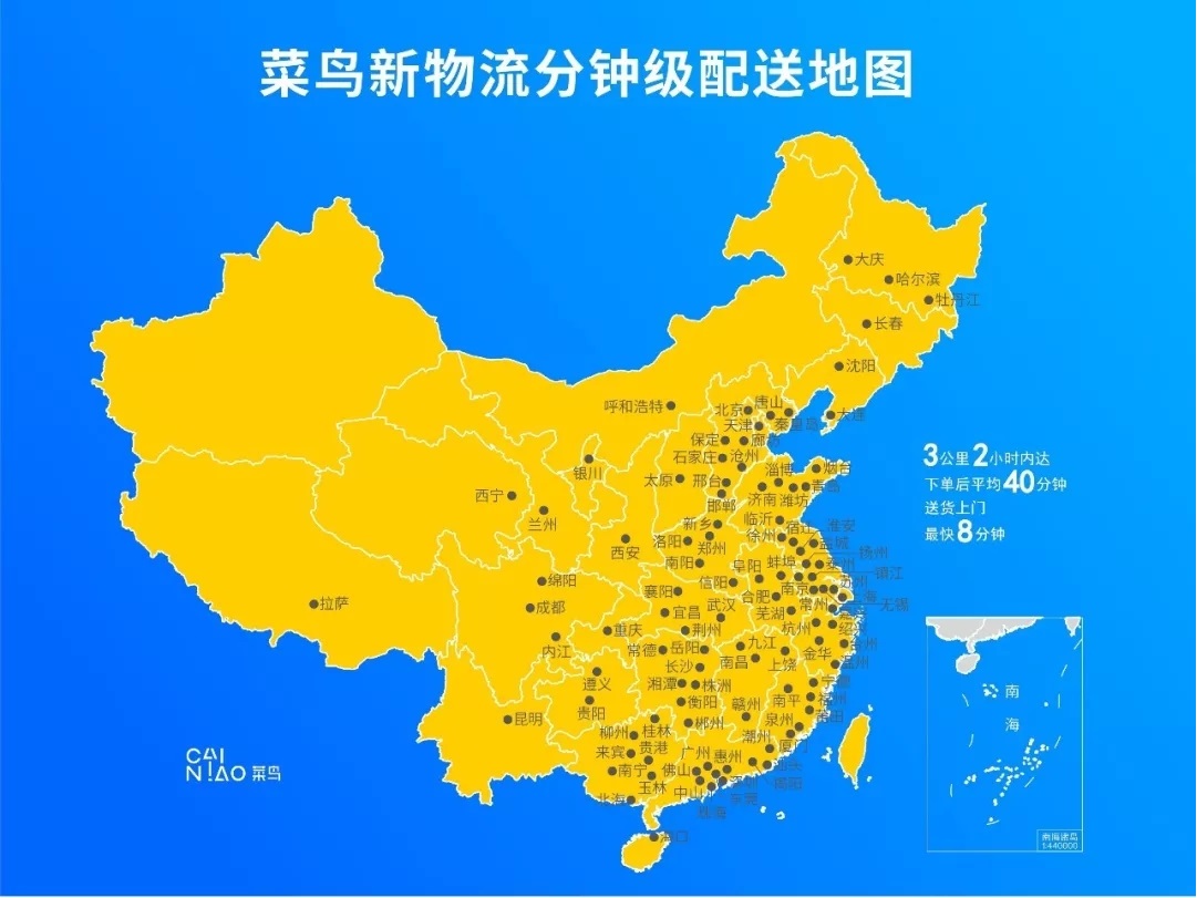 據(jù)介紹,618前夕,菜鳥門店發(fā)貨再下70城,目前已覆蓋全國30省100多個(gè)城市。作為新物流的首個(gè)618,盒馬30分鐘達(dá)、天貓超市1小時(shí)達(dá)、菜鳥“門店發(fā)貨”2小時(shí)達(dá)都是大促的標(biāo)準(zhǔn)服務(wù),分鐘級配送已經(jīng)涵蓋生鮮、美妝、母嬰、快消、服飾、醫(yī)藥等多個(gè)品類,并從一二線城市向三四線城市拓展。