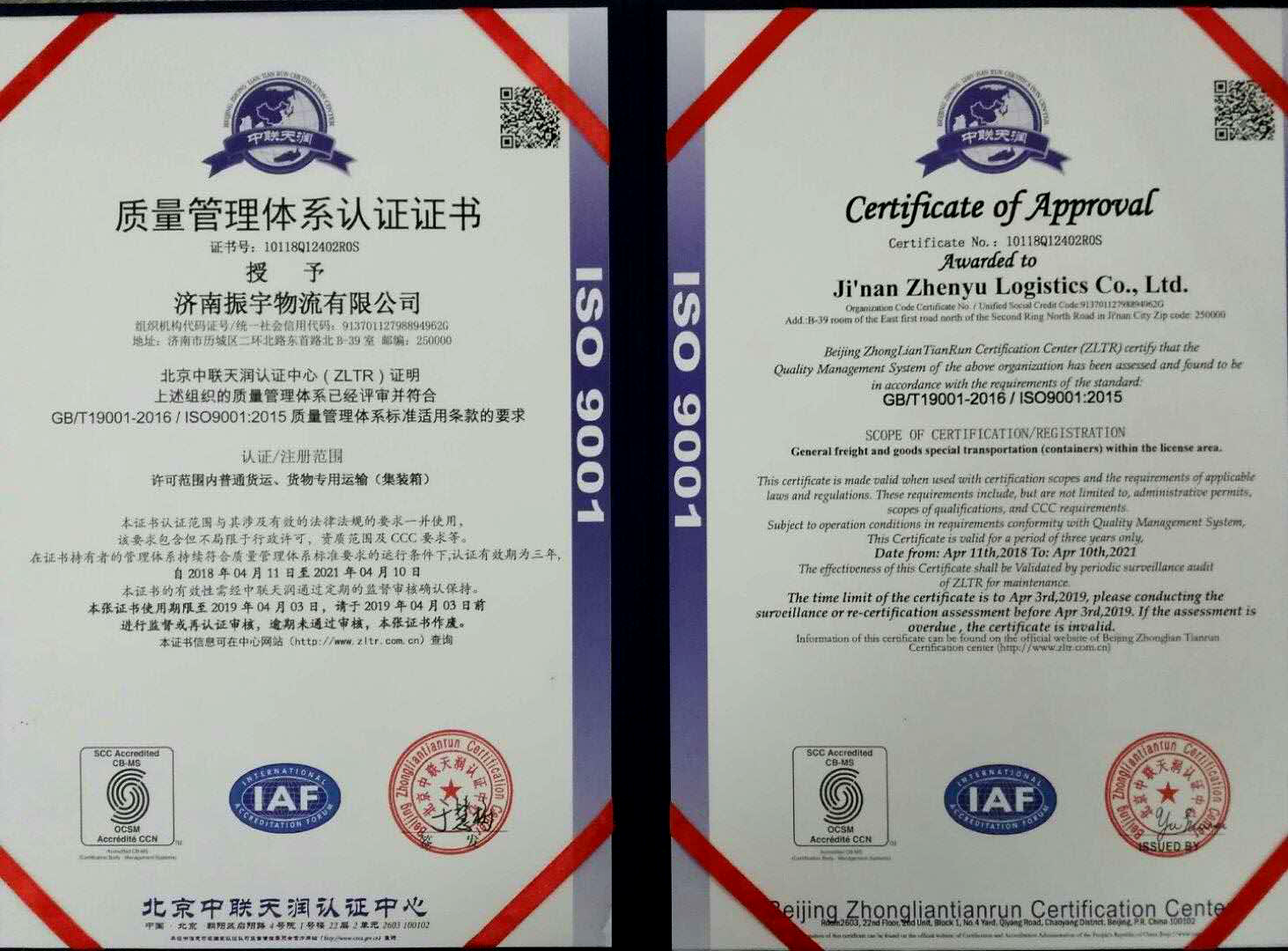 ISO 9001質(zhì)量管理體系認(rèn)證證書(shū)